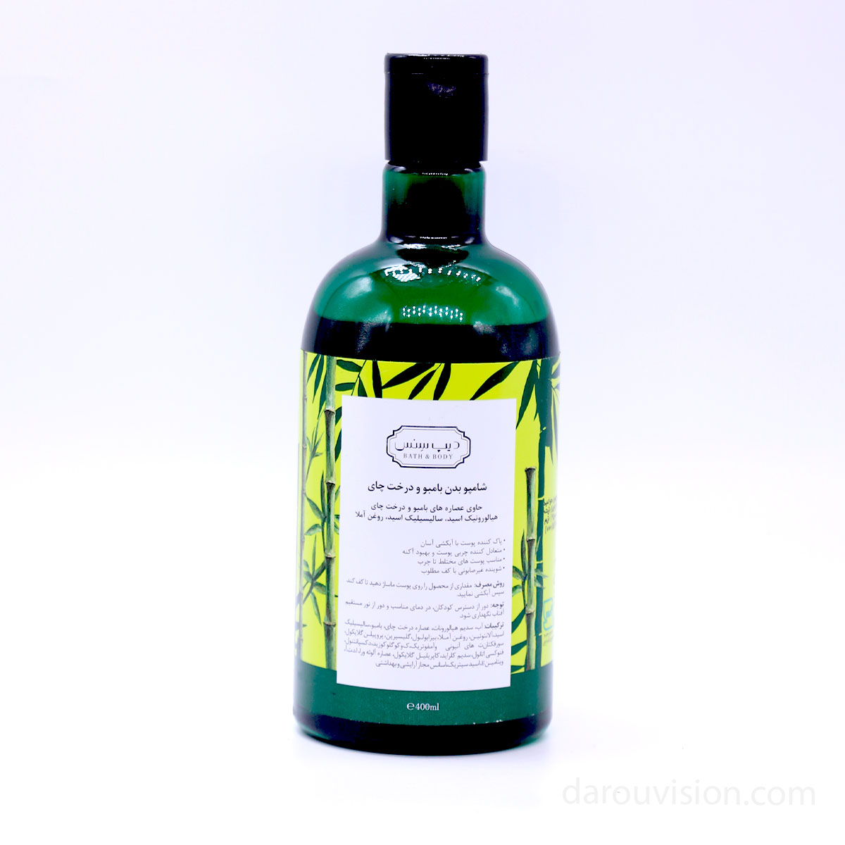 شامپو بدن با عصاره درخت چای و بامبو دیپ سنس با بهرهگیری از عصاره درخت چای با خاصیت پاککنندگی و کمک به کاهش باکتریهای مولد بو، و عصاره بامبو برای طراوت و شادابی پوست، آلودگیها و چربی اضافه را از سطح پوست پاک میکند.فرمولاسیون آن برای مصرف روزانه مناسب بوده و بدون ایجاد احساس سنگینی یا لیزی، حس تمیزی واقعی ایجاد میکند.