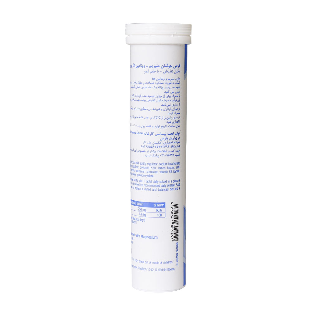 - حاوی ۳۰۰ میلیگرم منیزیم و ۱.۴ میلیگرم ویتامین B6 در هر قرص