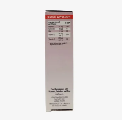 - این مکمل حاوی سلنیوم (200 میکروگرم) و ویتامین E (20 میلیگرم) است که هر دو ماده برای تقویت سیستم ایمنی و کاهش استرس اکسیداتیو ضروری هستند.
