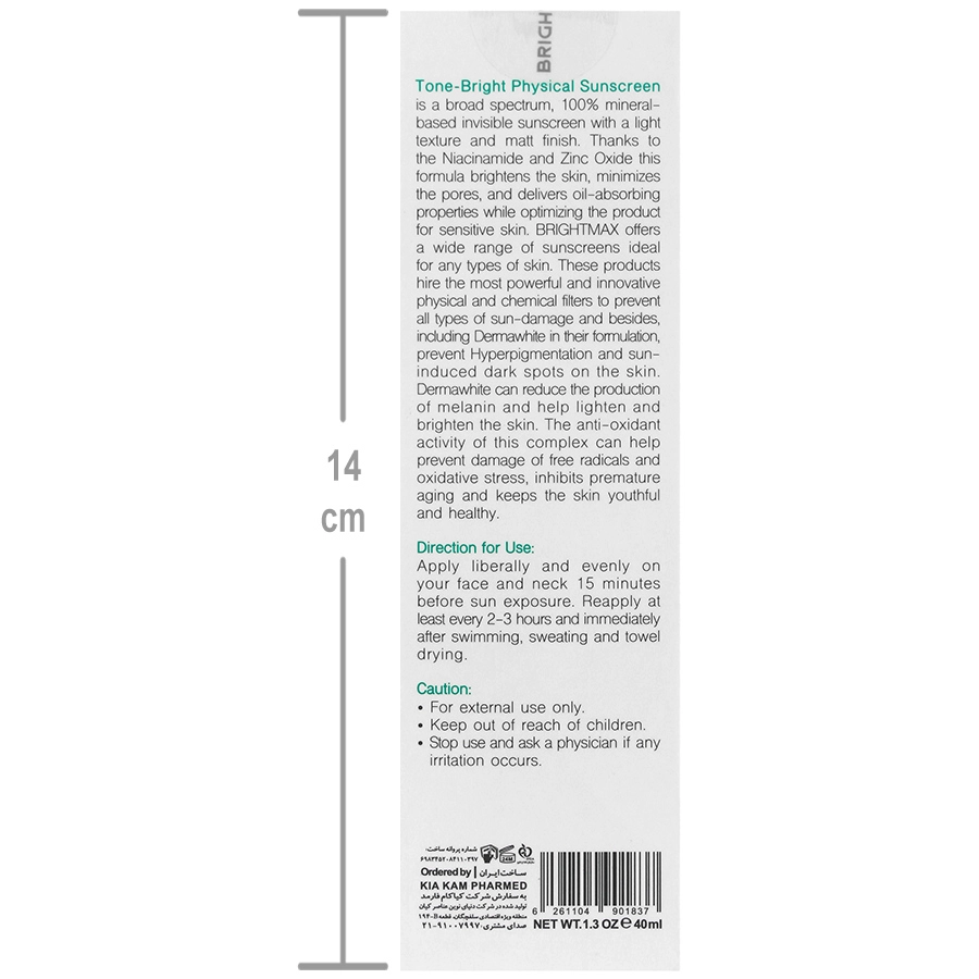 کرم ضد آفتاب فیزیکال بیرنگ تن-برایت برایت مکس با SPF50، محصولی ایدهآل برای محافظت از پوست در برابر اشعههای مضر خورشید است. این کرم با ترکیبی از فیلترهای معدنی و عناصر مغذی، به حفظ سلامت و جوانی پوست کمک میکند.