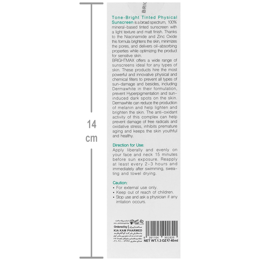 کرم ضد آفتاب رنگی تن برایت برایت مکس با SPF50، محصولی با کیفیت برای محافظت از پوست در برابر اشعههای مضر خورشید (UVA/UVB/IR) است. این کرم حاوی ویتامین C پایدار شده، ترانگزامیک اسید و کمپلکس درماوایت است که به کاهش لکههای تیره و یکنواختی رنگ پوست کمک میکند.