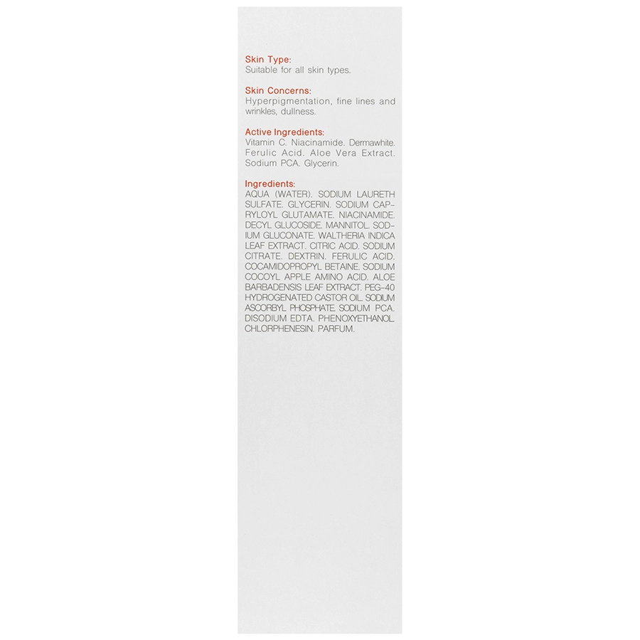 | ترکیبات اصلی | ویتامین سی، عصارههای گیاهی (چای سبز، آلوئه ورا و ...)؛ فومدهندههای ملایم؛ مواد نرمکننده |