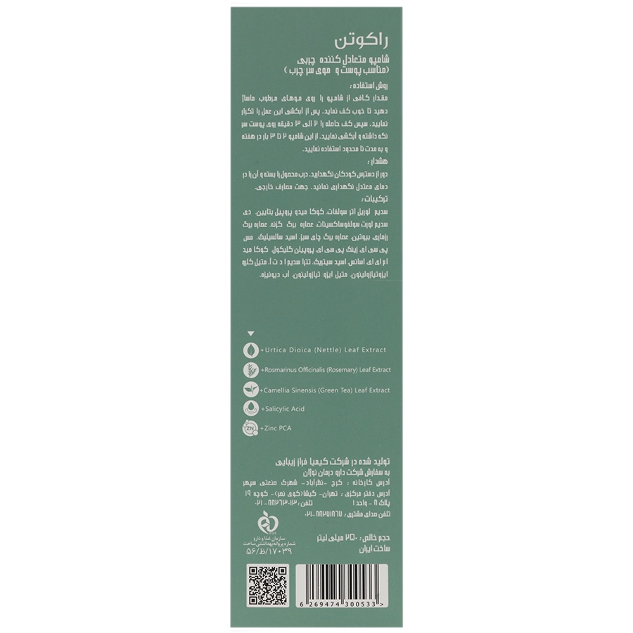 شامپو متعادلکننده چربی راکوتن، محصولی تخصصی برای کنترل و کاهش چربی اضافی پوست سر و موهای چرب است. این شامپو با ترکیبات مؤثر گیاهی و غیرتحریککننده، بدون آسیب به ساقه مو یا خشکی بیش از حد پوست سر، چربی را تنظیم کرده و به تعادل طبیعی پوست کمک میکند. استفاده منظم از این شامپو باعث احساس تمیزی، سبکی و شادابی در موها میشود.