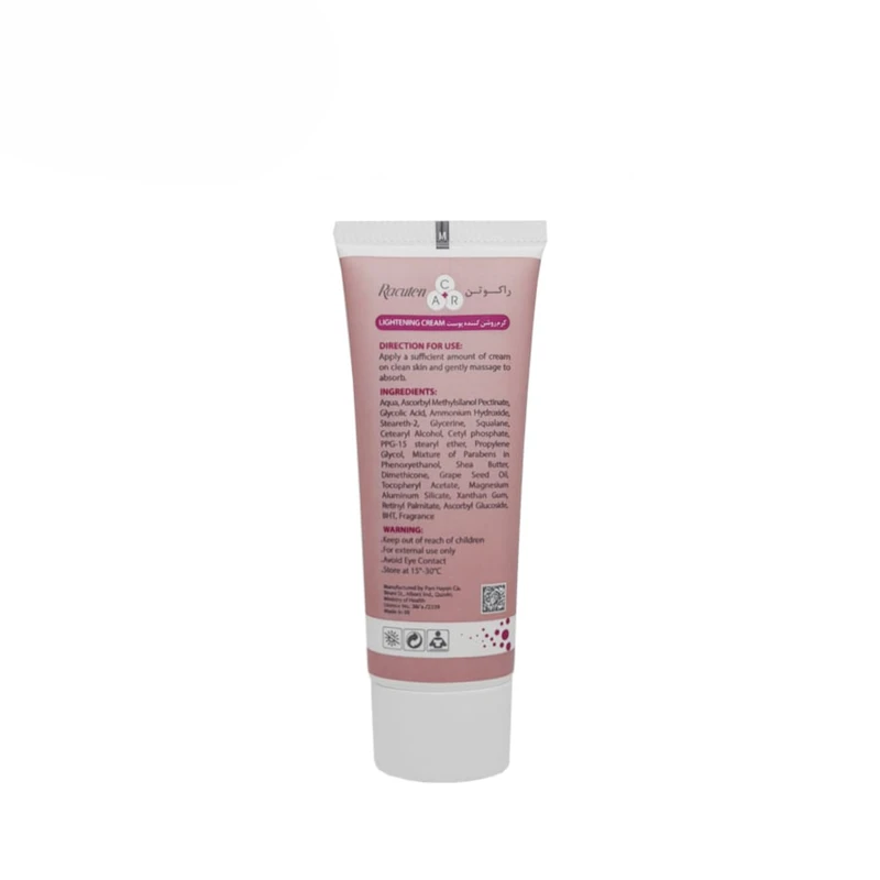 کرم روشنکننده راکوتن مدل Lightening با فرمولاسیونی پیشرفته به کاهش لکهای پوستی، یکنواختسازی رنگ پوست و افزایش شفافیت آن کمک میکند. این کرم حاوی ترکیبات مغذی و مرطوبکننده است که علاوه بر روشنکنندگی، لطافت و نرمی پوست را حفظ میکند.