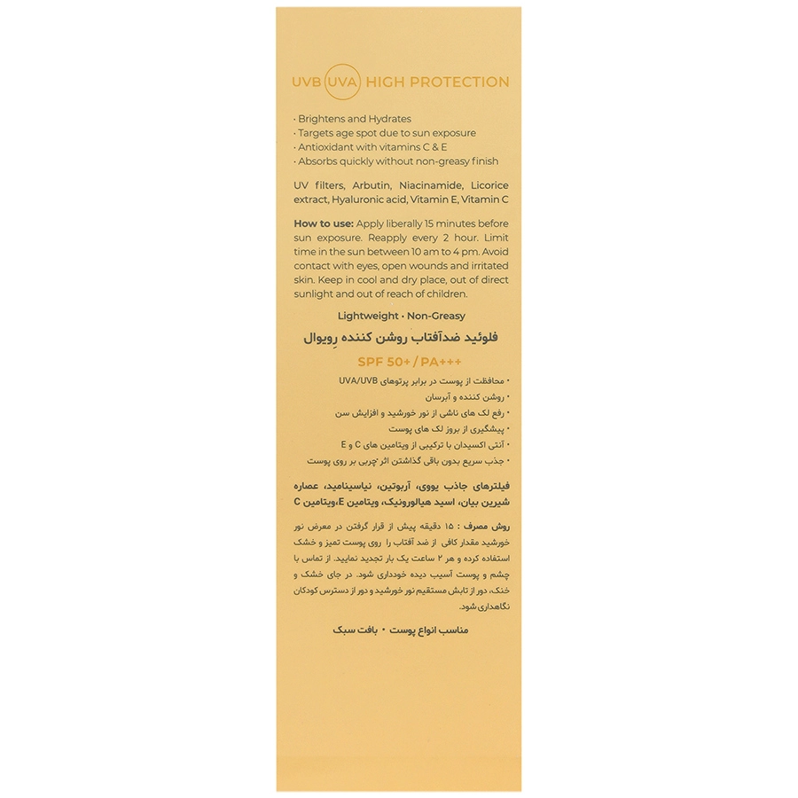 فلوئید ضد آفتاب روشن کننده رویوال LUMISENSE دارای خواص مرطوبکنندگی است و میتواند به عنوان یک مرطوبکننده روزانه هم عمل کند، اما برای آبرسانی عمیقتر میتوانید از یک مرطوبکننده جداگانه استفاده کنید.