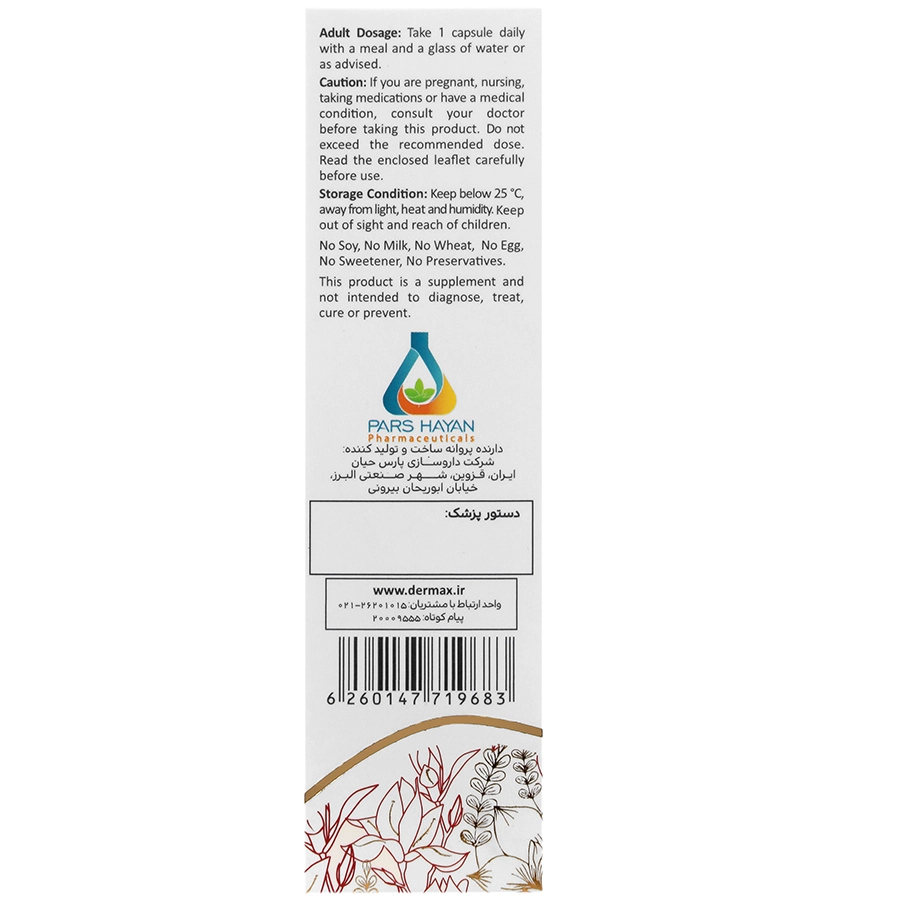 دوز معمول: روزانه ۱ کپسول همراه غذا و یک لیوان آب. .