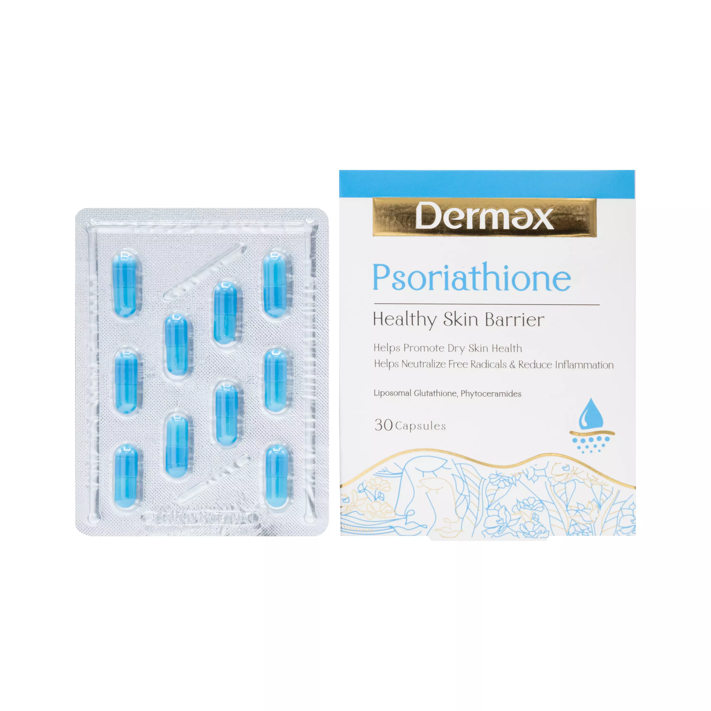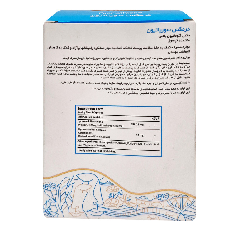 "درمکس سوریاتون" با ترکیب عصارههای گیاهی و ویتامینهای ضدالتهاب، به بهبود علائم پسوریازیس، قرمزی و خارش پوست کمک میکند. مکملی علمی برای حفظ سلامت و آرامش پوستهای حساس.کپسول درمکس سوریاتیون با ترکیب گلوتاتیون لیپوزومال و فیتوسرامیدها، از پوست در برابر استرس اکسیداتیو محافظت کرده، رطوبت و درخشندگی پوست را افزایش میدهد و به کاهش التهابات پوستی کمک میکند.
