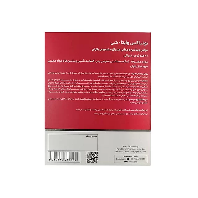 "قرص وایتا شی نوتراکس (Nutrax Vita-She)" تولید شرکت پارس حیان (Pars Hayan) است و با فرمولی جامع، به طور خاص برای نیازهای بدن بانوان طراحی شده ، مکملی تخصصی برای بانوان است که جهت تأمین نیازهای روزانه بدن به ویتامینها، مینرالها و ترکیبات گیاهی طراحی شده است.